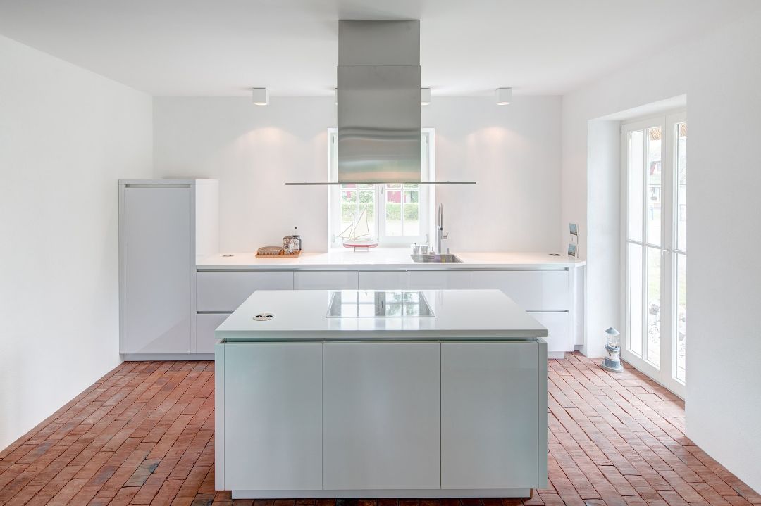 Unsere Aufgabe war die bauhistorisch korrekte Rekonstruktion des Gebäudes. Dabei sollte im Innern nach einer umfangreichen Entkernung sowie einem Teilabriss eine neue Aufteilung als großzügige Ferienimmobilie erreicht werden. Ortstypische Elemente wie die „Darßer Tür“, Klappläden und regionale Materialien wie Reetdach, scharrierter Putz und die Verwendung von handgeformten Backstein innen wie außen fügen das Haus in die Landschaft ein und erlauben gleichzeitig eine zeitgemäße Nutzung.