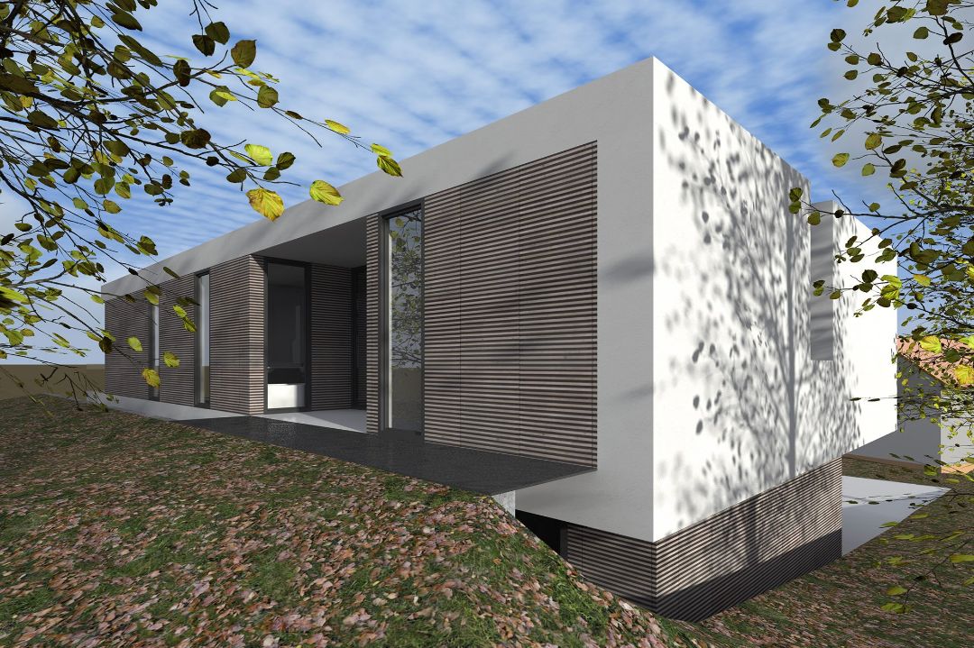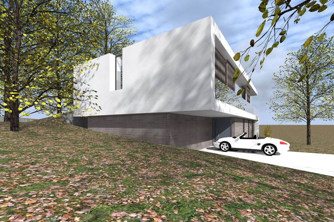 Auf einem exponiert gelegenen Grundstück soll ein modernes Einfamilienhaus errichtet werden. Den Bauherren waren dabei besonders die Blickbeziehungen im Haus sowie in die umgebene Landschaft wichtig.