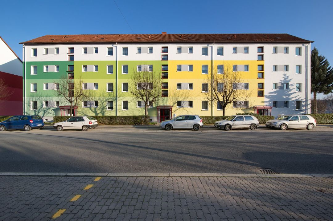 In unseren Aufgabenbereich fiel die Erstellung eines Farbkonzepts/Farbprojekts der Mehrfamilienhäuser Thomas-Müntzer-Str. 2–6 und 8–12, Nordhausen in 0,8 MP-Fertigteilbauweise (Altbestand Typ IW 64).