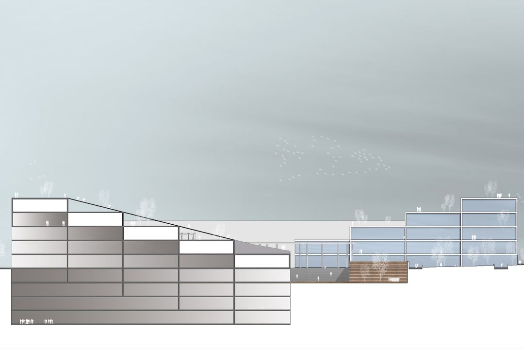Neben der geplanten öffentlichen und privaten Nutzung der Bauten mit hohem Besucheraufkommen, schafft dabei die Höhenstaffelung der Gebäude zugleich eine Landmarke, die den Ort weithin sicht- bar als Zentrum markiert. Diese Strukturen gliedern die Flächen des Planungsgebietes in erkennbare, räumlich wahrnehmbare Abschnitte und wandeln den Ort von der ebenen Fläche in eine dreidimensionale Stadtlandschaft.