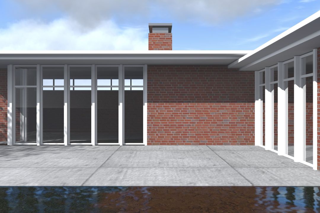 Nach Süden und Westen öffnet sich der Baukörper durch großflächige Verglasungen und gestattet den Blick in die Landschaft. Ein befestigter Hof ermöglicht eine ganzjährige Nutzung. Im Sommer können die verglasten Flächen geöffnet und so der Außenraum als „Wohnraum im Freien“ genutzt werden. Die Dachüberstände sind so berechnet, dass die Glasflächen im Sommer im Schatten liegen. Im Winter und in der Übergangszeit scheint die Sonne tief ins Haus und ermöglicht so kostenlose solare Gewinne.