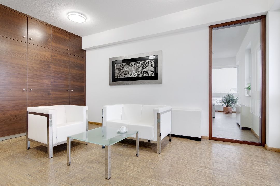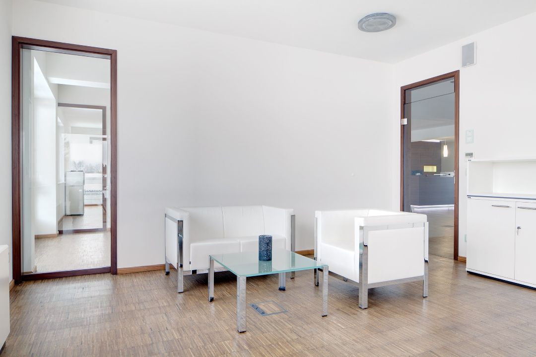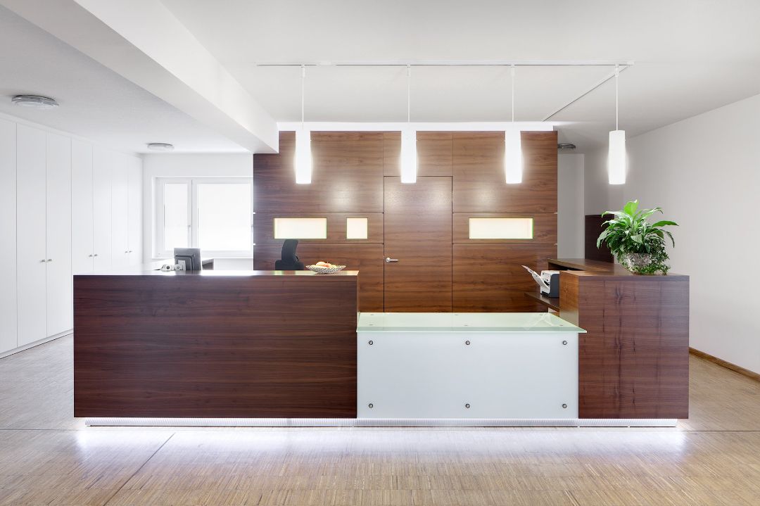 Im Zusammenhang mit dem Erweiterungsneubau der Jüttner Orthopädie KG auf dem bisherigen Grundstück war es unsere Aufgabe, die Raumteilung im Innern und Einbaumöbel zu entwerfen, Materialien auszuwählen und bei der übrigen Möbelauswahl zu beraten.